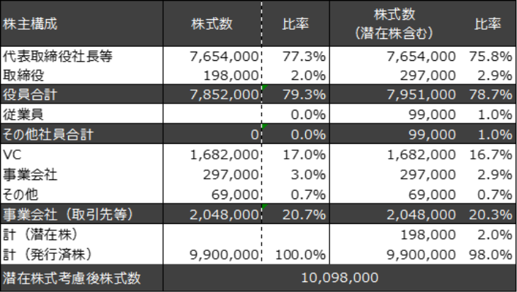 そのため、特別決議が必要となる重要な決議事項についてもスピーディな意思決定が可能な状態であったと考えられます。結果として創業から4年弱という短期間での上場が達成できたとも考えられます。